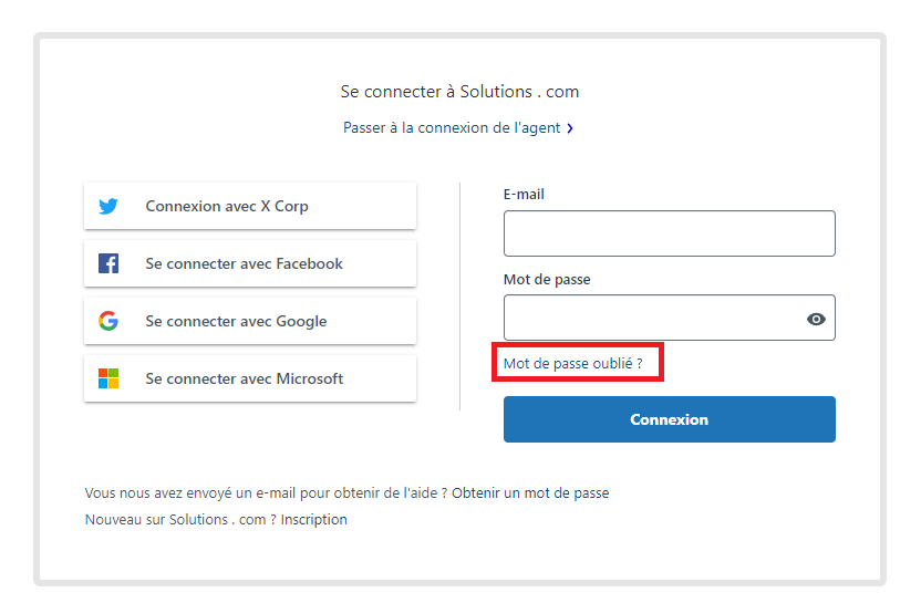 Puis cliquez sur le bouton "Mot de passe oublié? "