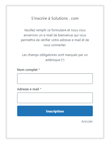 Saisissez alors votre prénom puis votre nom dans la case prévue à cet effet ainsi que votre adresse email puis finalisez en cliquant sur le bouton "Inscription"